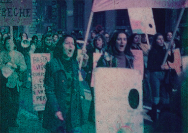 Undead Voices focuses on the archive as a subject rather than a repository of material, and invites us to reflect critically on the absences it encompasses, on the politics of knowledge, on possible alternative ways of writing history. The starting point is a Super 8mm amateur film, Donne emergete!, made in 1975 by filmmaker Isabella Bruno. Examination of the reel, recently rediscovered and consigned to the Centro Sperimentale di Cinematografia ANCI, revealed that the film is, according to archival criteria, damaged beyond repair. Reviewing its devastated chemical emulsions, the project exposes the effects of the marginalisation of “minor cinemas” and the dissemination or destruction of the material culture related to the movements of contestation in Italy in the 1970s. It nevertheless manages to retrieve the ghostly sequences documenting feminist demonstrations and assemblies, gestures of resistance and love, as well as the several songs that constitute the soundtrack – that reveal strange and transgressive invocations of undead voices calling out to us from the afterlife.